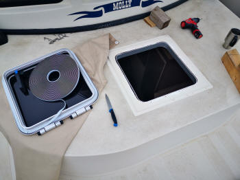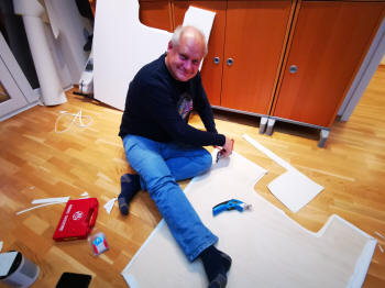 Inzwischen hatte ich ja schon Übung im Abreißen von Verkleidung und neu montieren. Also ging es jetzt im Salon weiter. Auch hier war ein Fenster undicht, was ich neu eingedichtet habe. Ansonsten ging es weiter wie gehabt.
