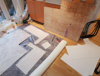 Sperrholzplatten erneuert und auf Maß zugesägt. Dann habe ich die
